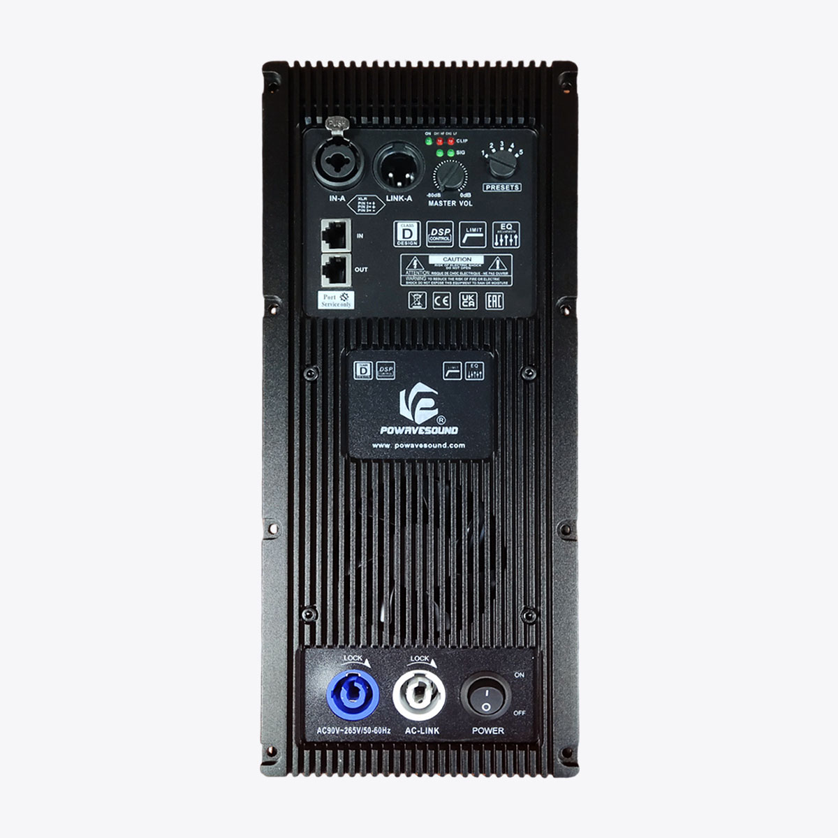 - Professional-grade audio class D amplifier circuit, Bi-AMP design, RS485 networking.