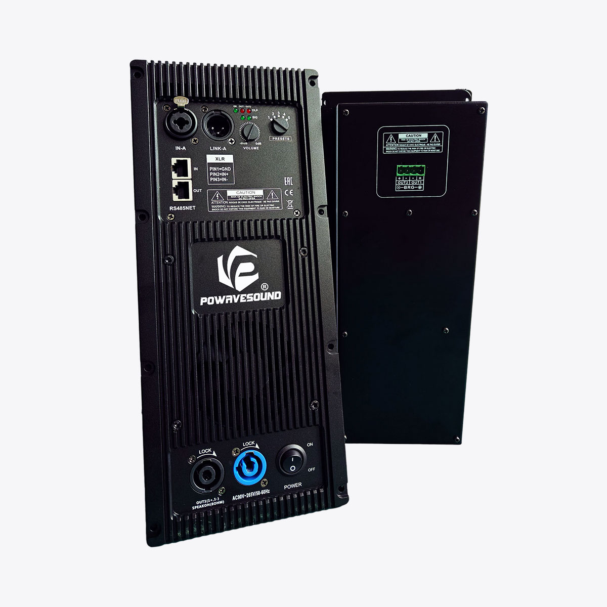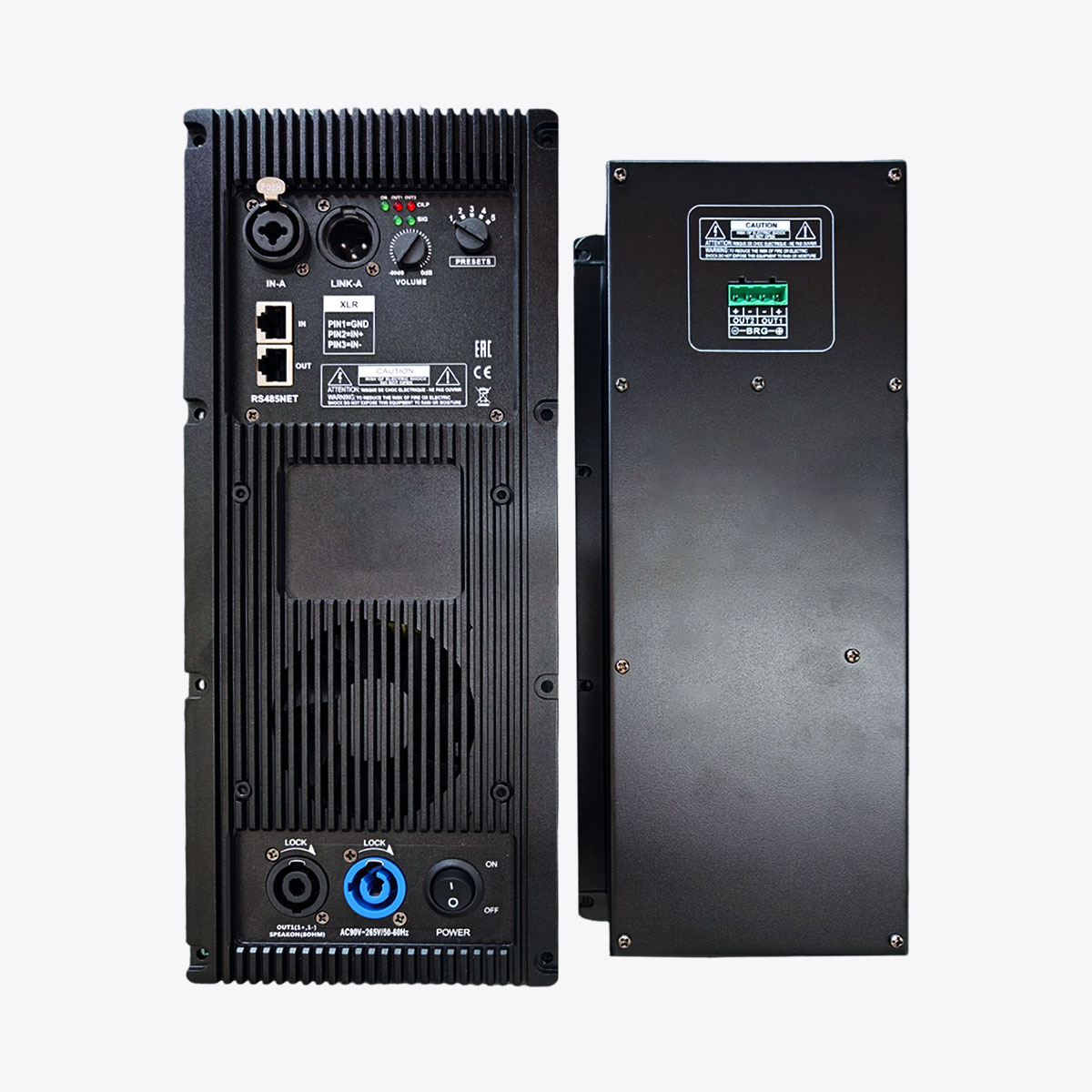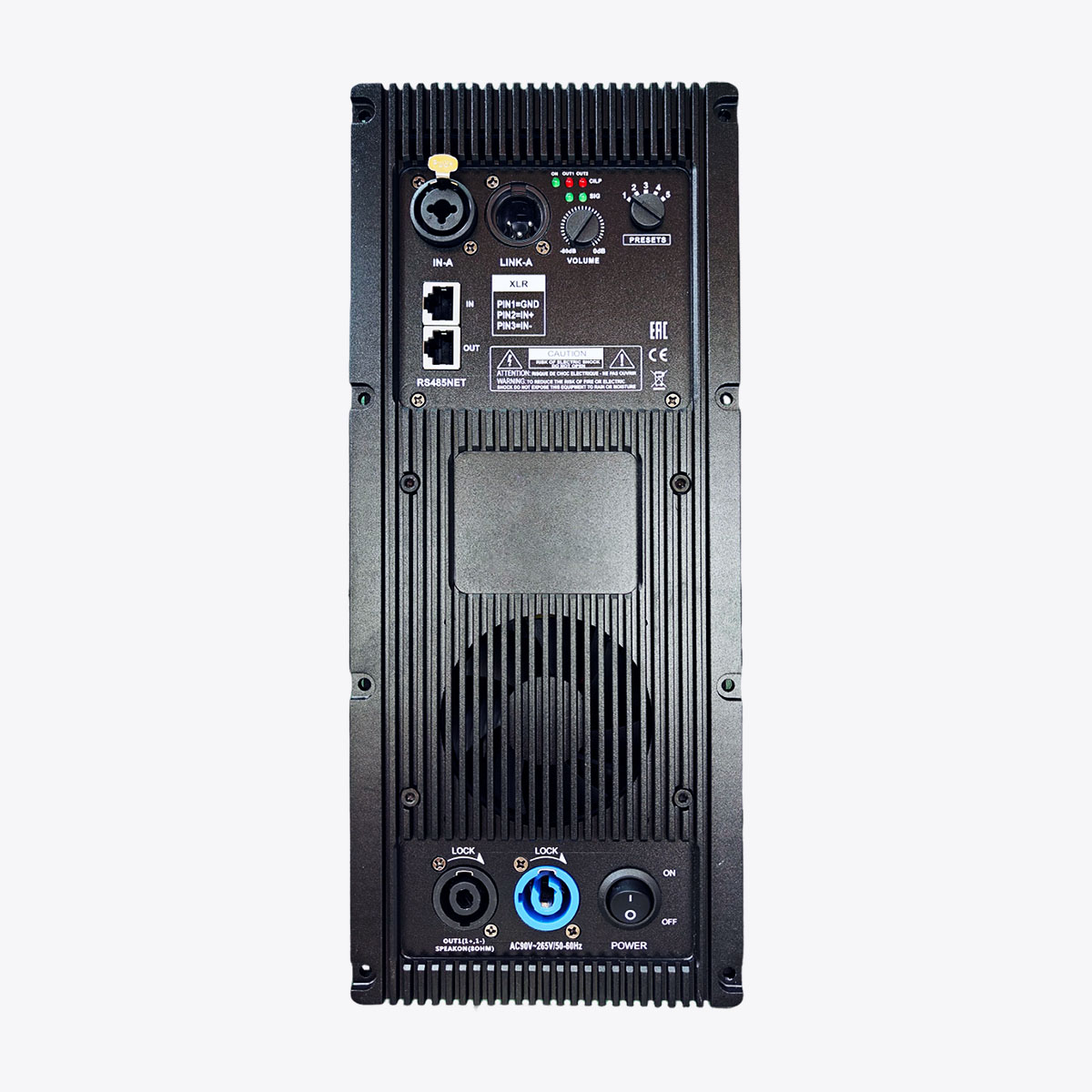 - Professional-grade audio class D amplifier circuit, Bi-AMP design, RS485 networking.