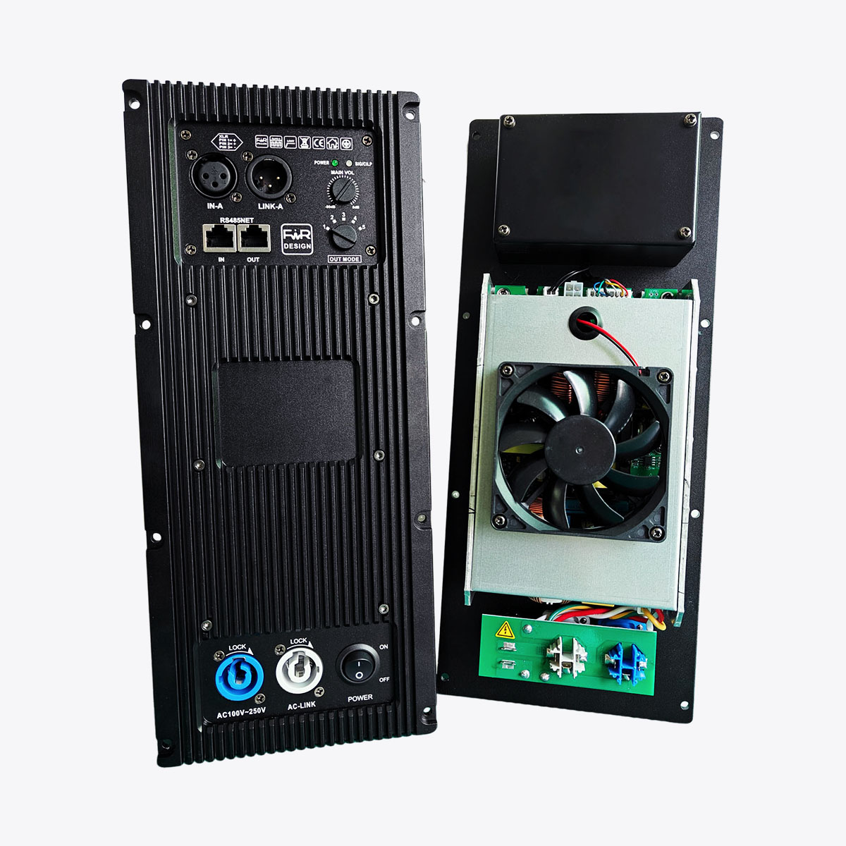 - Professional-grade audio class D amplifier circuit, Bi-AMP design, RS485 networking.