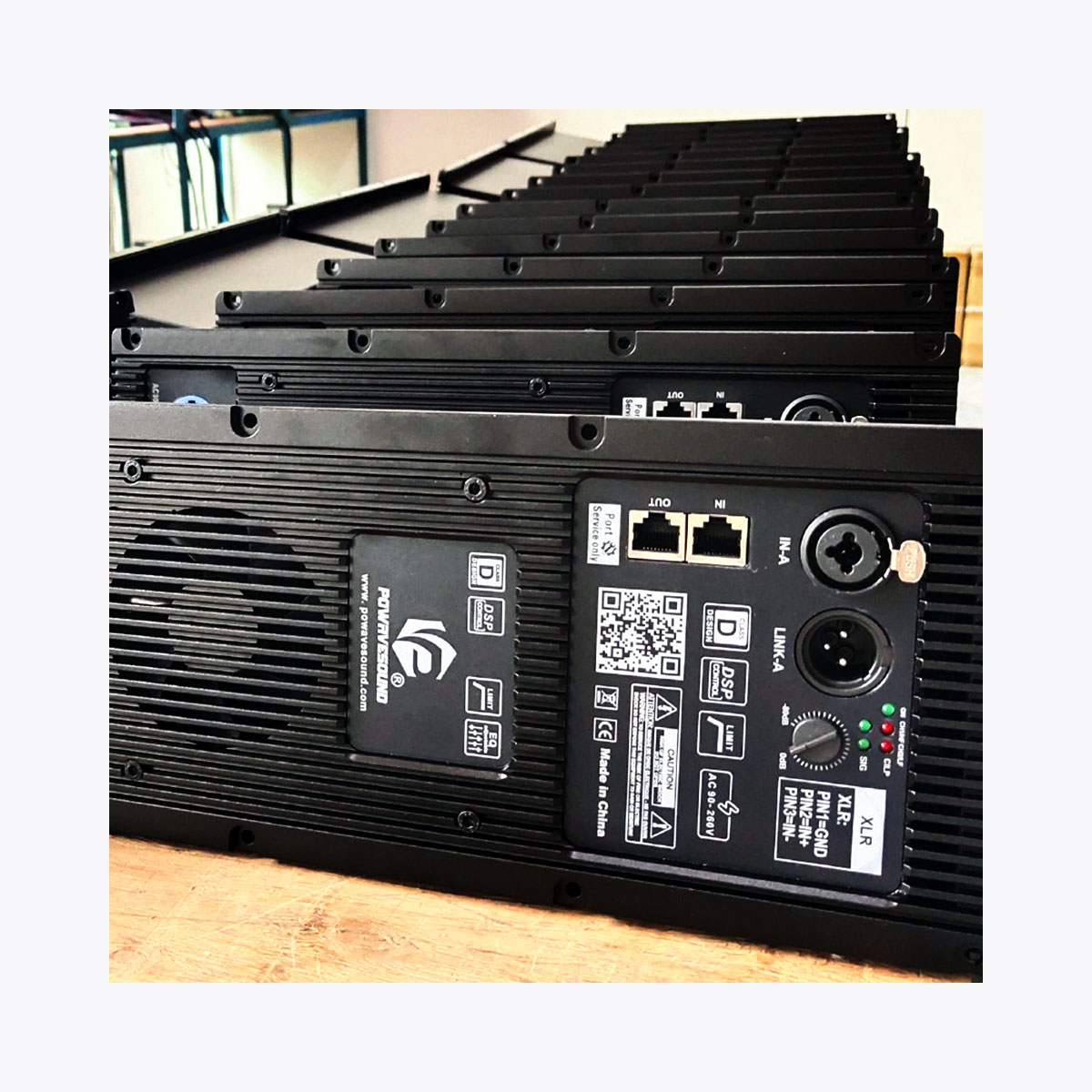 - Professional-grade audio class D amplifier circuit, Bi-AMP design, RS485 networking.