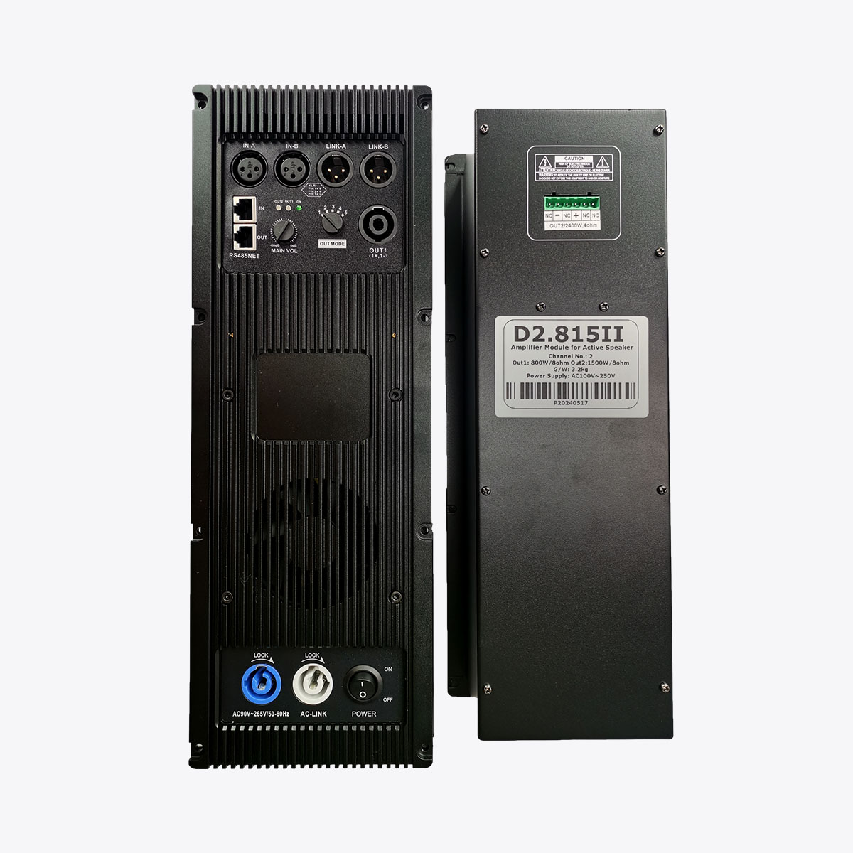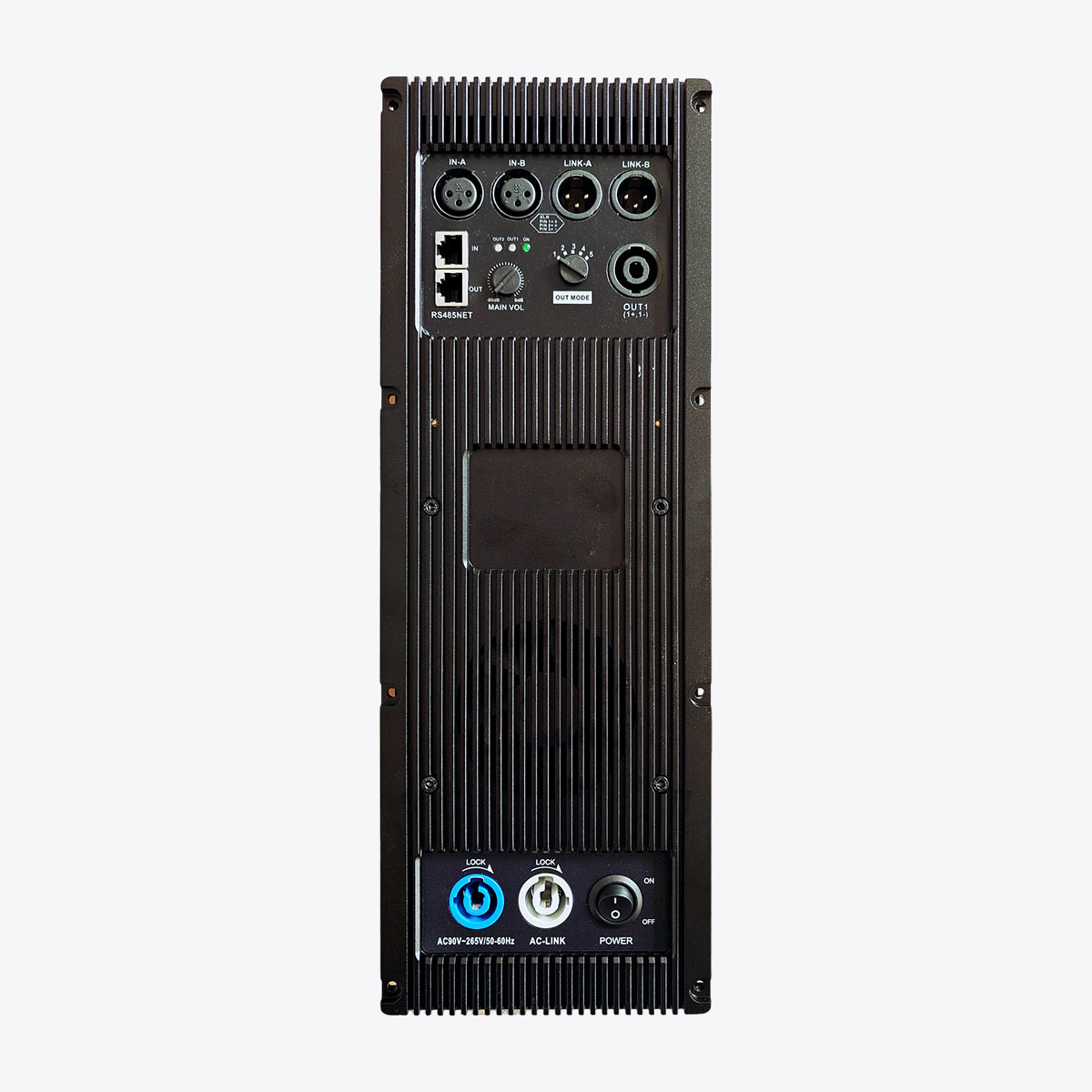 - Professional-grade audio class D amplifier circuit, Bi-AMP design, RS485 networking.
