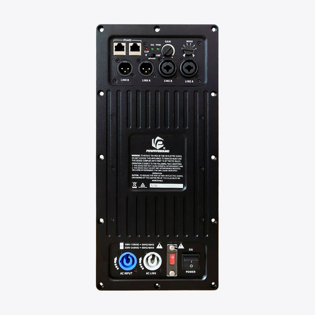 - Professional-grade audio class D amplifier circuit, Bi-AMP design, RS485 networking.