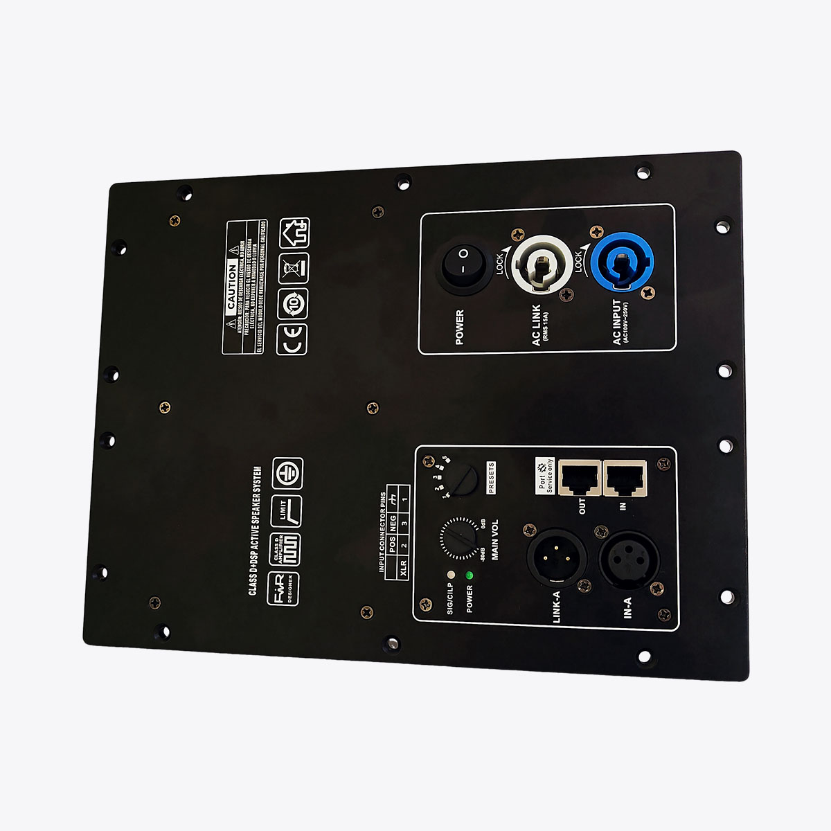 - Professional-grade audio class D amplifier circuit, Bi-AMP design, RS485 networking.