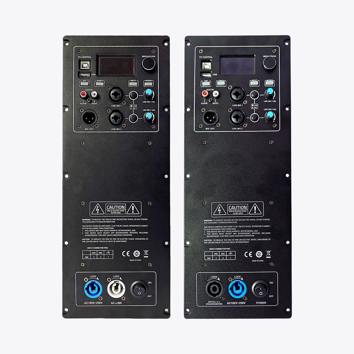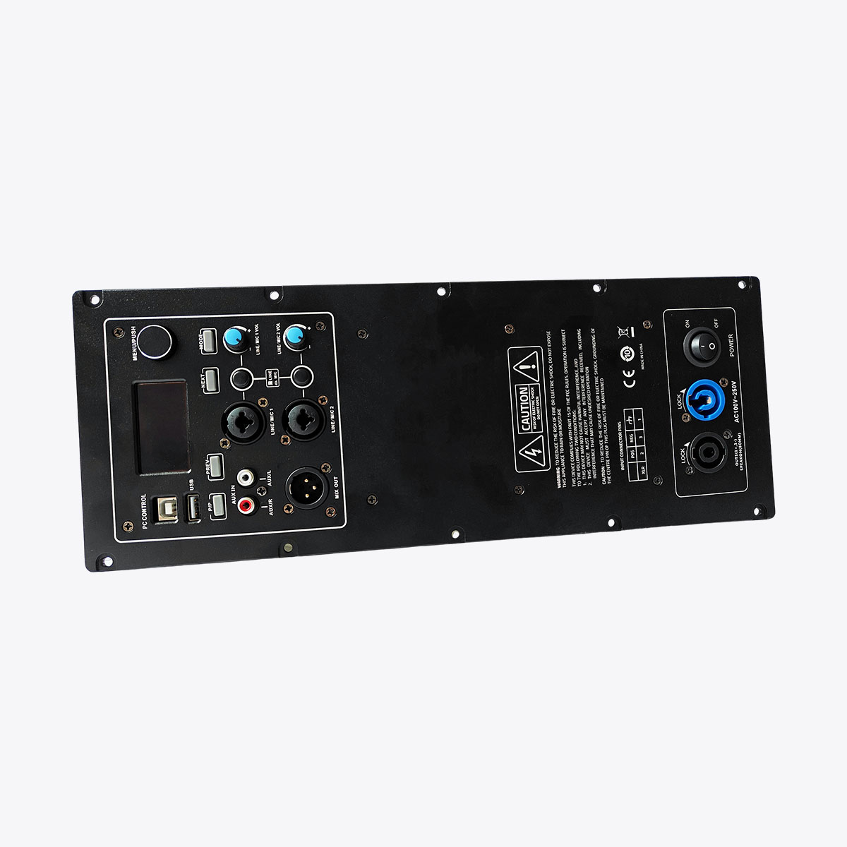 - Professional-grade audio class D amplifier circuit, Bi-AMP design, RS485 networking.